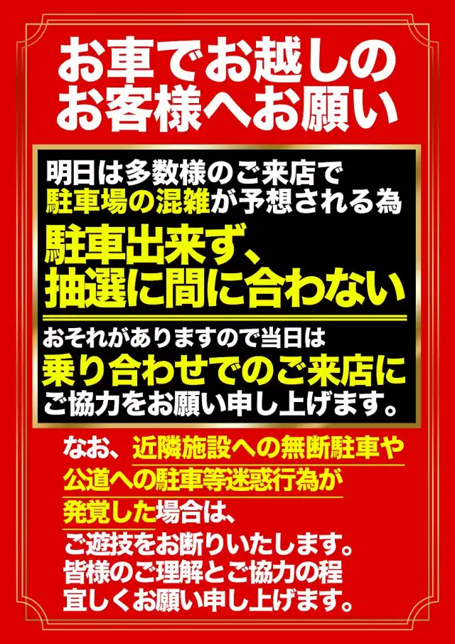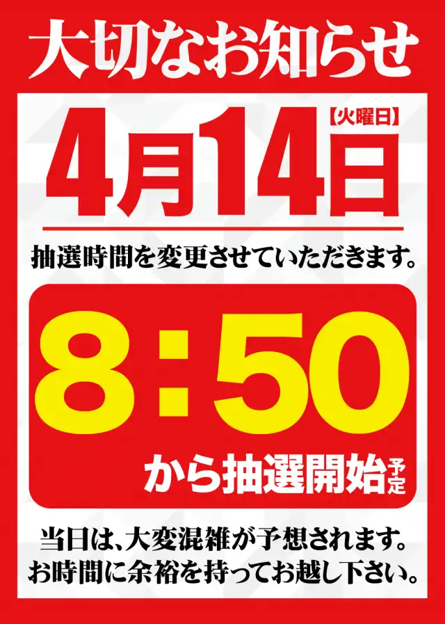8:55までにお集まりいただいたお客様を対象に、入場順番券を配布いたします。 |