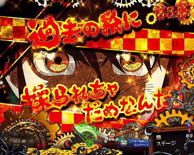 本機の激アツ柄の名称は、赤と金で構成された「劇赤柄」。ステップアップやカットインなど、色んな場面で出現して大チャンスを告げるから、その後の展開は要注目よ♪