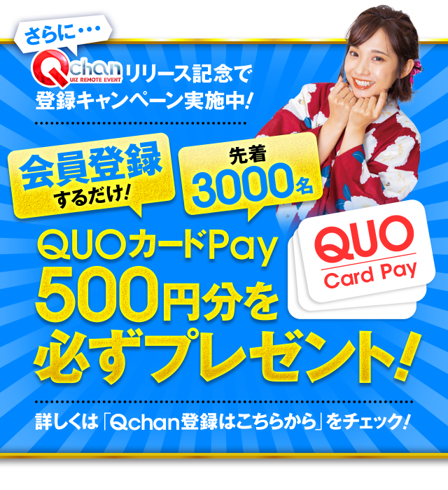 もちろんコチラのクイズ大会も「Qchan」の登録は必須。期間中にスムーズに参加できるよう、ぜひとも事前に登録しておきましょう!