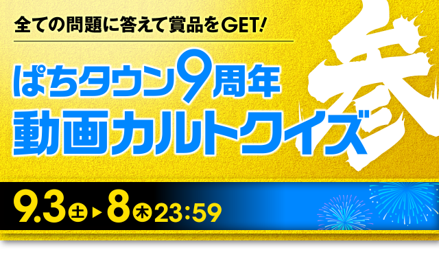 9周年動画を視聴して豪華賞品をGET! 「ぱちタウン9周年 動画カルトクイズ」
