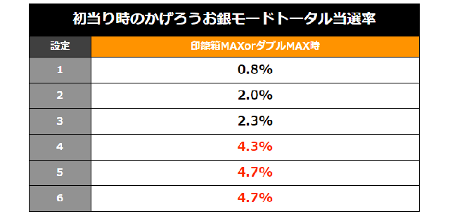 初当り時のかげろうお銀モード当選率には大きな設定差があるから、確認できれば高設定の期待大!