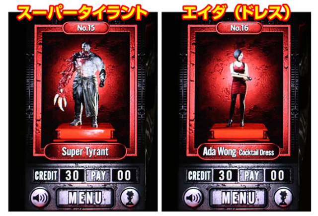 高設定示唆“強”になるのは「スーパータイラント」と「エイダ(ドレス)」の2種類。通常の「タイラント」と「エイダスーツ」も色は赤だけど示唆“弱”だから、強パターンを見逃さないようにね。