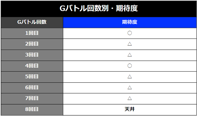 8回未満でAT当選のチャンスとなるのはCZ「1回目」と「4回目」。AT終了時は必ず30Gの武器高確からスタートするから、1回目は特に狙い目になるかもしれないわね。