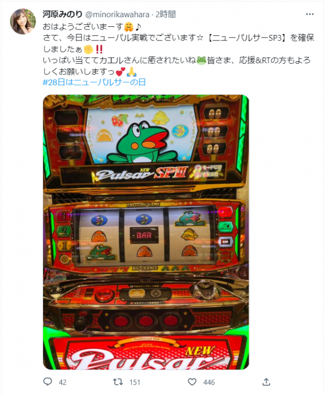 『ニューパルサーSPⅢ』らしい出玉ポテンシャルを体感できた河原みのりには、今までの実戦同様、その健闘を称え拍手を送りましょう!