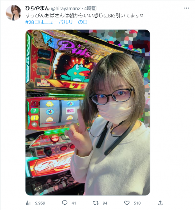 前回4回目の実戦人・河原みのりと同様に、全体の8割強がBIGとなる偏りぶりで最終出玉は4桁目前でしたが、残念ながら今一歩河原には及ばず。しかし、ヒラヤマン本人も実戦ツイートで述べていた通り、初心者をも魅了する楽しさを『ニューパルサーSPⅢ』が見せてくれました。