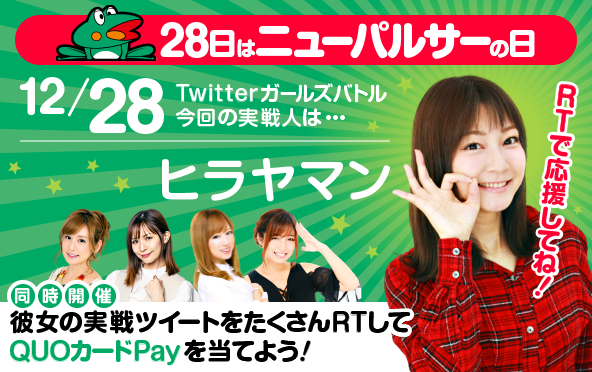 ニューパルサーの日Twitterガールズバトル 12/28(水)ヒラヤマン