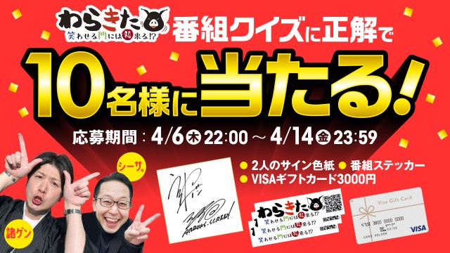 「わらきた」第4回 視聴者プレゼント応募ページ
