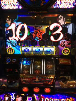 フリーズを引いて爆出ししているタクミ君を横目に、移動は困難でBCも5スルーを超え、ヤメようと思うと6回目のBCに当選(全て三日月)。テーブルNの可能性も否めない。席を立っただけで集まってくる立ち見君達(笑)。