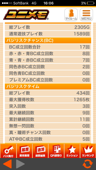 みなさんのアドバイスをもとに、颯爽とBTを単発(笑)で終了させ、次回テーブルを意識しながらモード判別のため朧BCで消化するも、三日月×3。