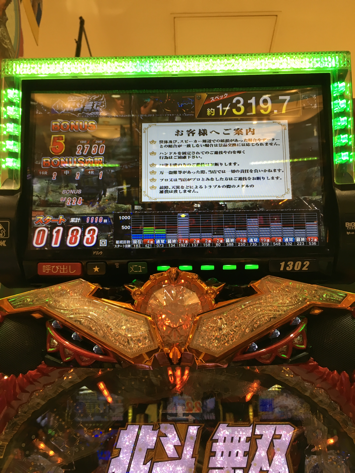 そんな中、しばらく打てる台もなくフラフラしていると、いきなりプロらしき方が急いで退店。確認するとヤメてる。