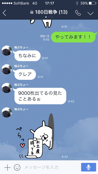 移動すると前回の180日戦争でおそらく6を掴んで結果を出したオモダたくみ君を発見。