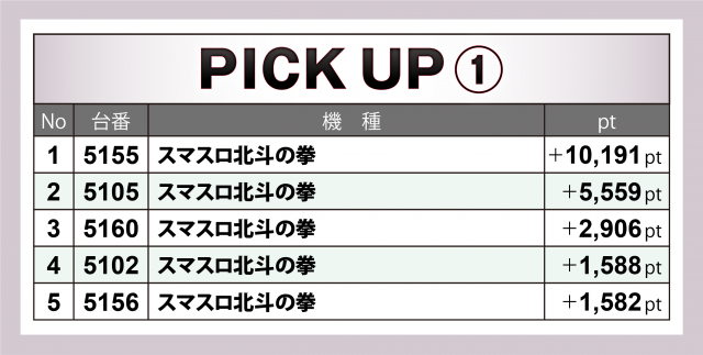まずはこの日、合計ptで5桁を超えた2機種をチェック。