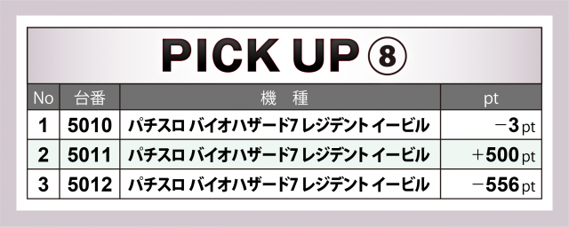 また、合計ptでは振るわなかったものの、取材班は『パチスロ 新鬼武者2』も並びで好況にあった情報を掴んでいる。トップの成績を収めた5115番台は+3,894ptという結果に。