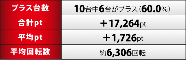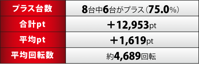 勝率では『スマスロ北斗』を上回り全体の4分の3がプラス、最もポイント数が高い5151番台では+5千超をマークした。