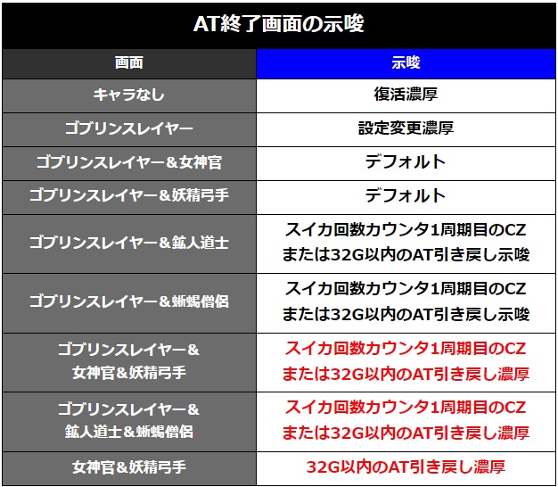 キャラが3人ならAT引き戻しorスイカ回数カウンター1周期目でCZ濃厚。女神官&妖精弓手の2人パターンは32G以内のAT引き戻し濃厚!