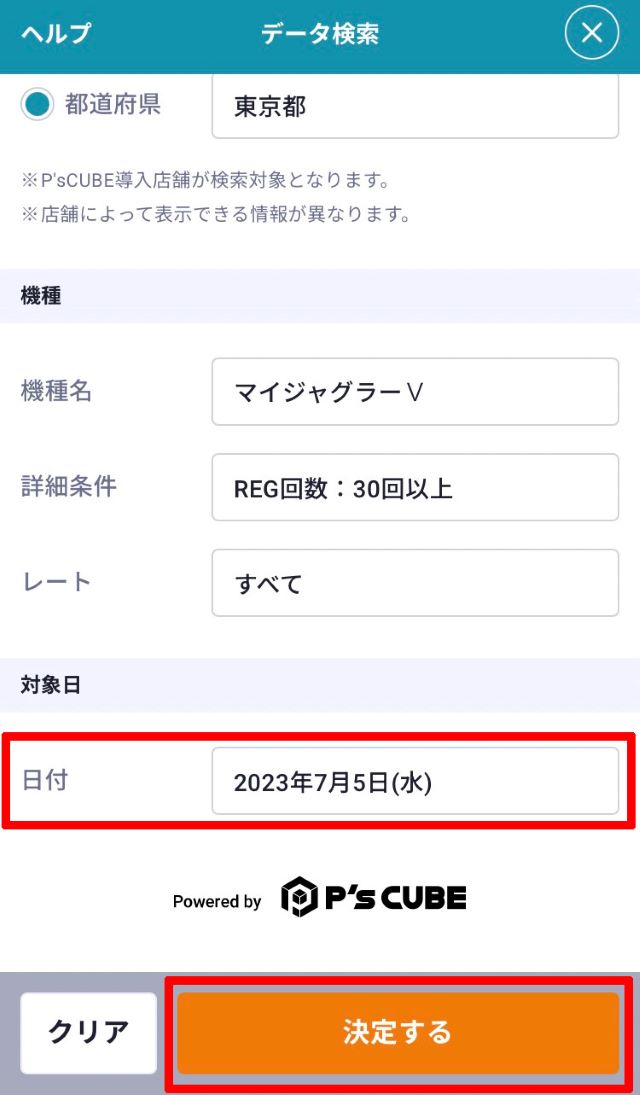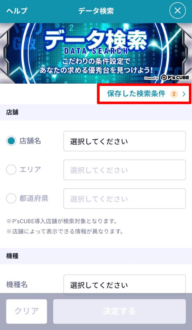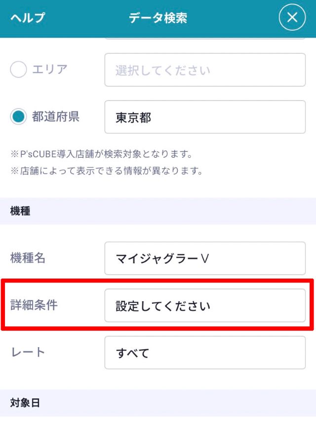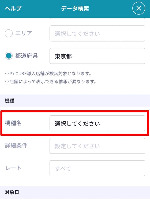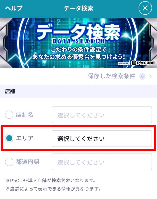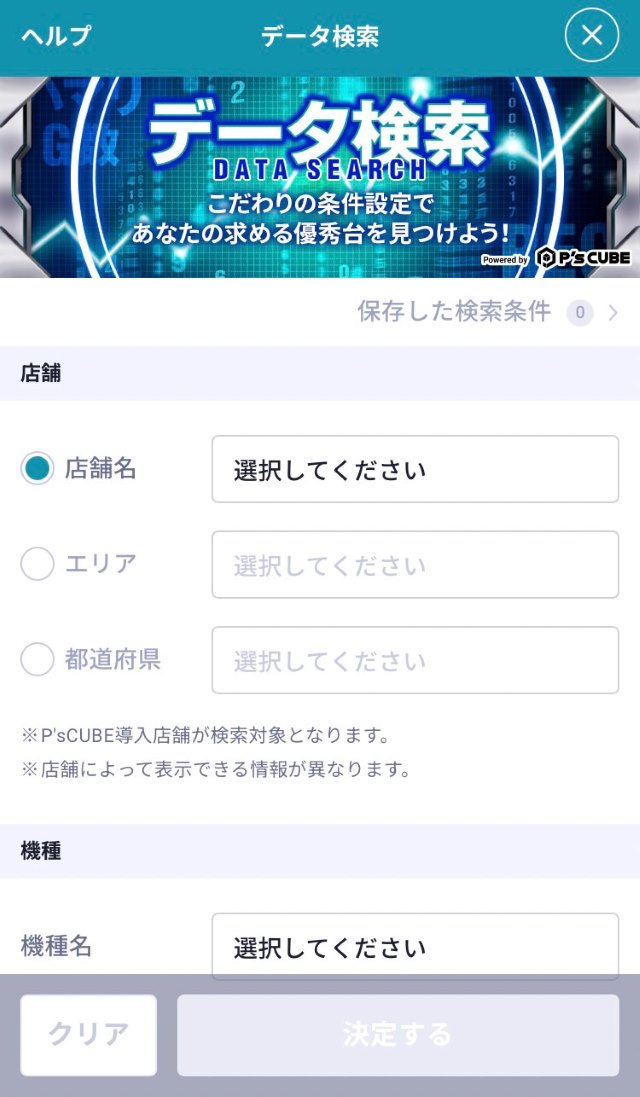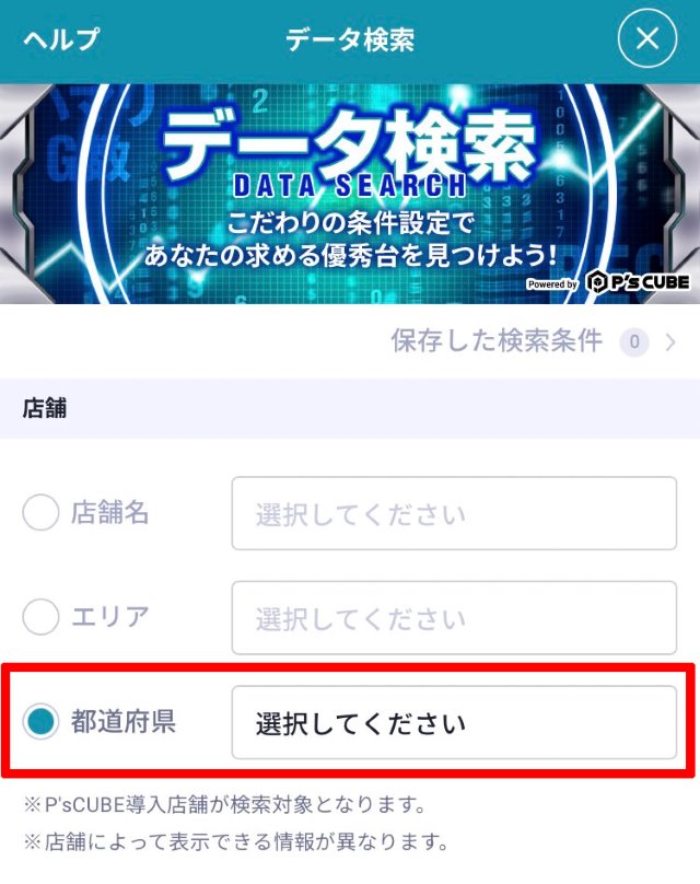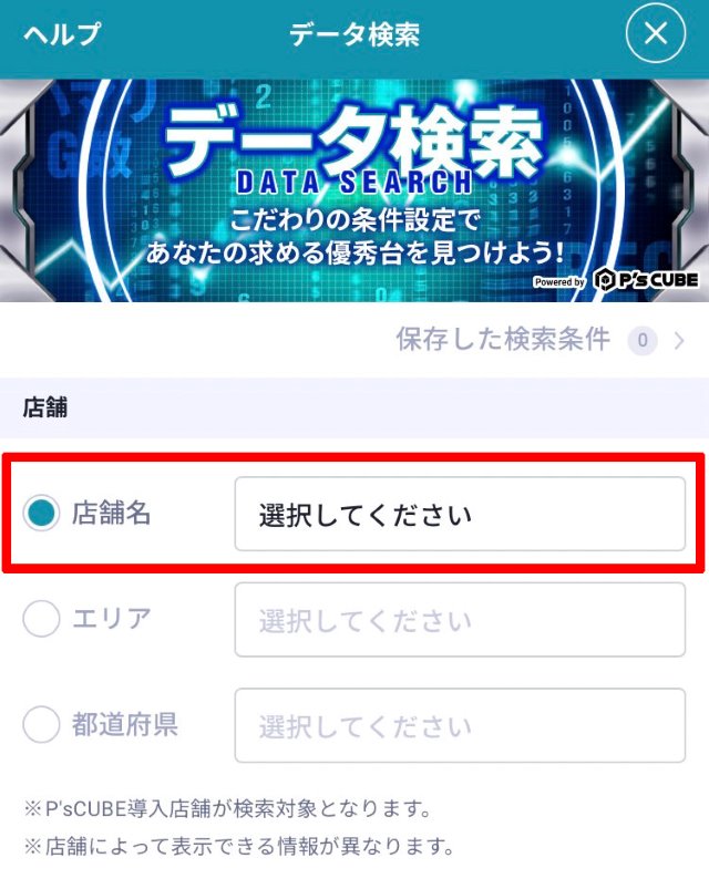 ※データ検索の対象となるのはP's Cubeで大当り情報を掲載している店舗のみとなります。また、大当り情報を掲載している店舗でも該当する項目を掲載していない場合は対象外となります。ご了承ください。