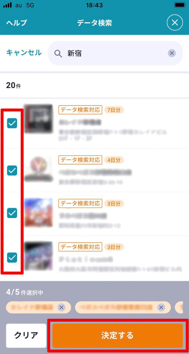 手順③:該当店舗一覧が表示されたら、検索したい店舗にチェックを入れ「決定する」を押す