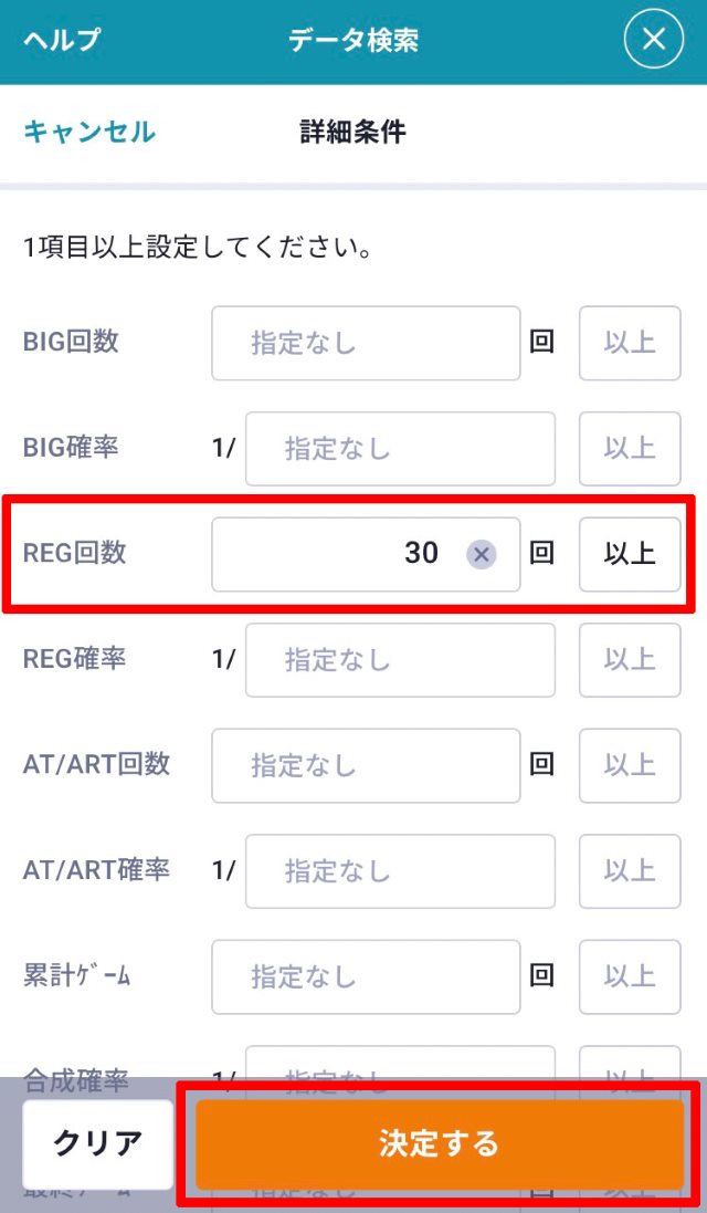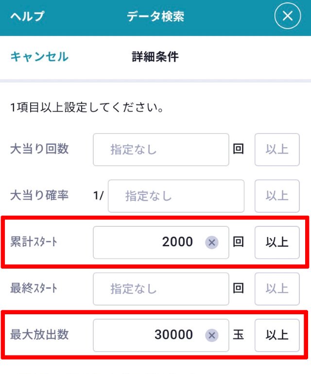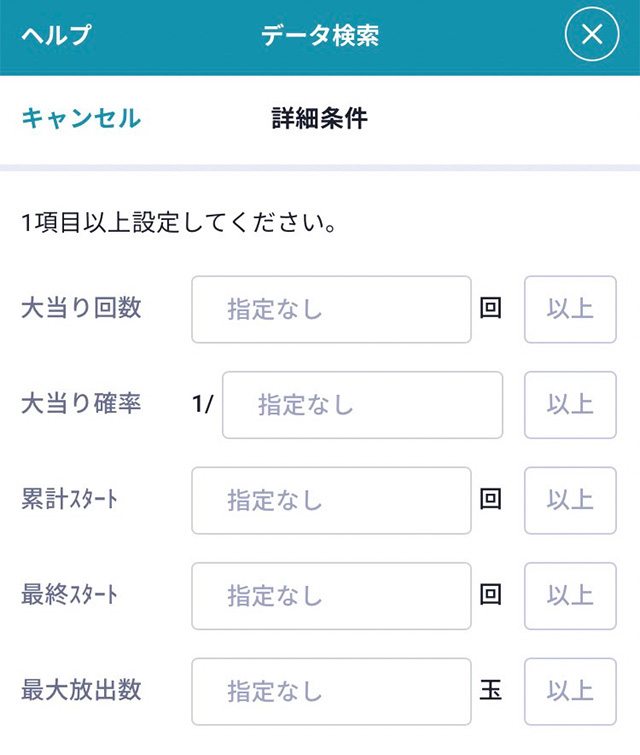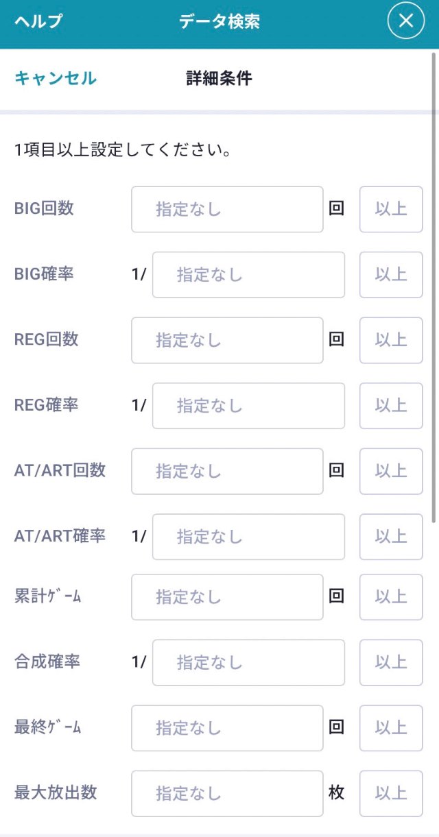 複数の条件を指定して検索する場合はすべての条件を満たした台のみ検索結果に表示されますので、掲載店舗数が多い以下の項目に入力することをオススメします。