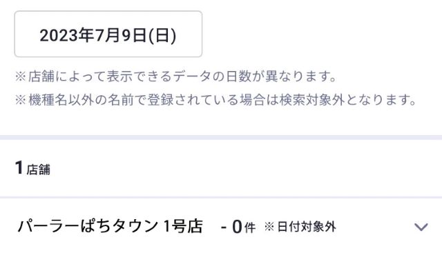 A:データ検索の対象となるのはP's Cubeで大当り情報を掲載している店舗のみとなります。また、大当り情報を掲載している店舗でも該当する項目を掲載していない場合は検索の対象外となります。ご了承ください。