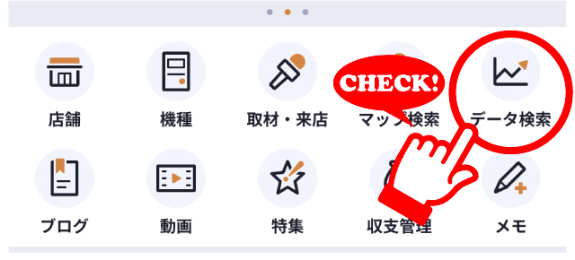 ぱちタウンアプリリニューアルの目玉となる「データ検索」について使い方や注意点などを説明しています。是非立ち回りのお供として活用してください。