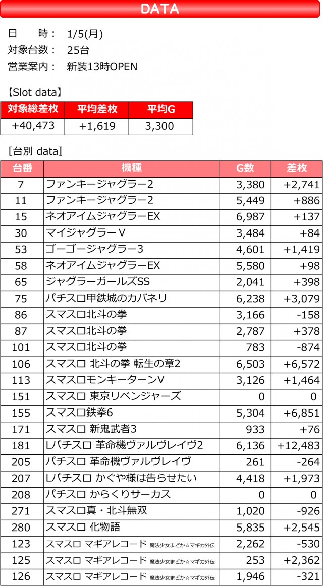 新台カレンダー