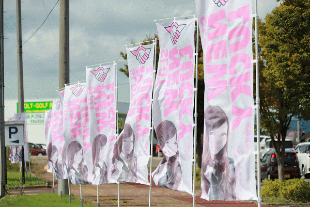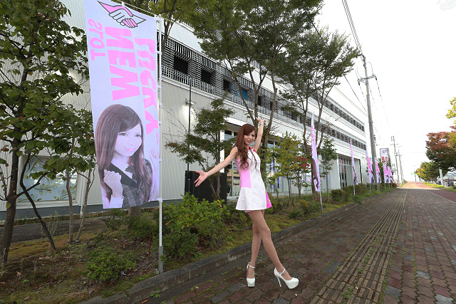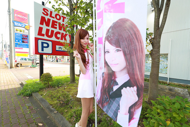 店舗の周囲にはイメージガール就任記念のノボリがハタメキ、大々的にアピールされたドデカイ看板も鎮座。