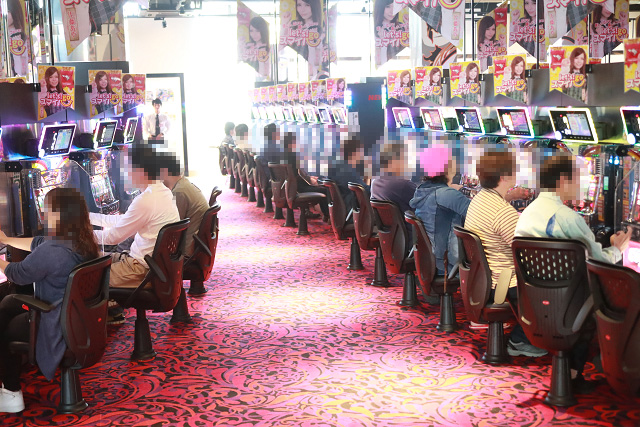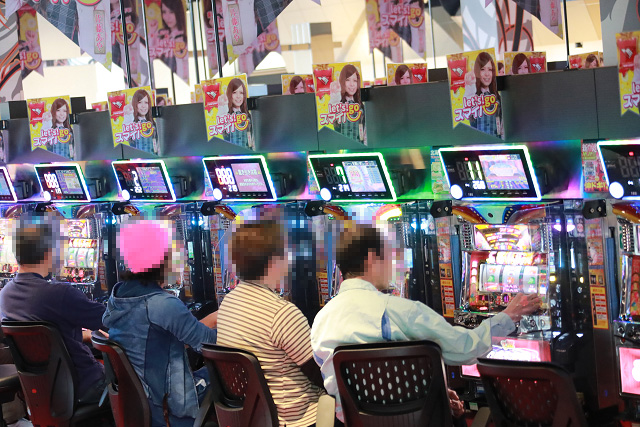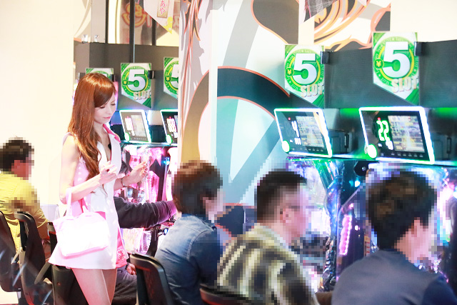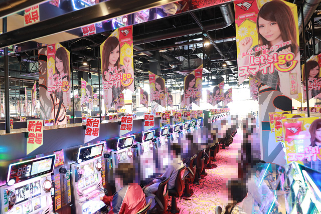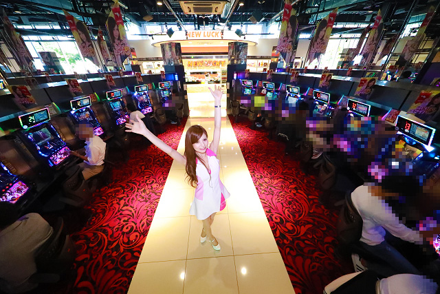 その様子に店内で遊技していたニューラッキーのパチスロファンも刺激され、佐藤あやの周りに集まる、群がる、溢れかえる!!!