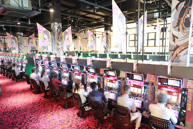そして、ここ『ニューラッキー古正寺店』では、パチスロ専門店ではまだまだ希少度の高いパチスロ専用各台計数機を標準装備。そのお陰で広い通路もさらに広々。