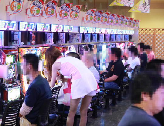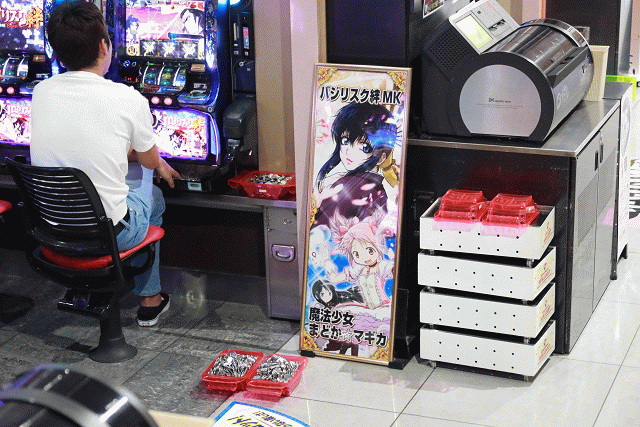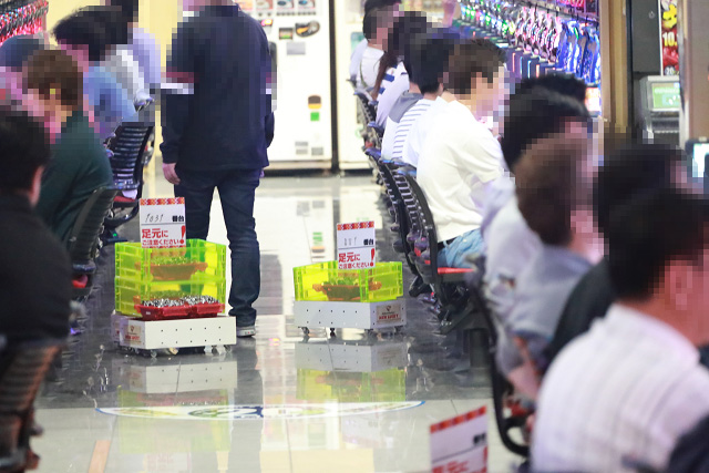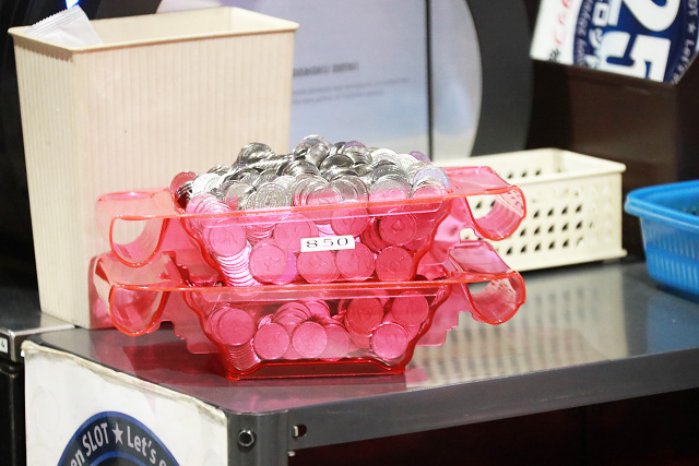 要町店は、パチンココーナーが各台計数機を導入。玉箱積みのない広い通路で移動もラックラク!