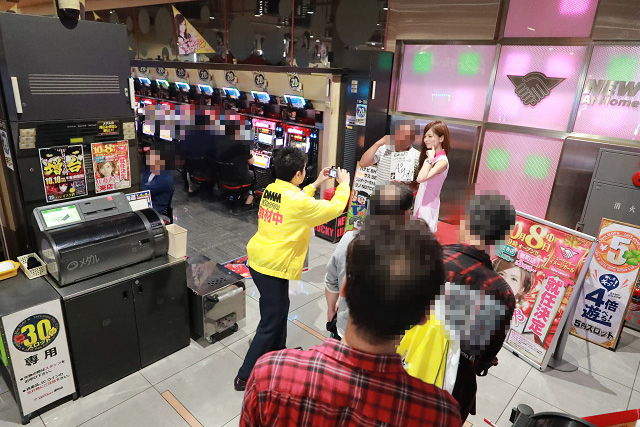 長蛇の列も一段落。今度はパチンコ島から丁寧にファンの皆さん一人ひとりにご挨拶。