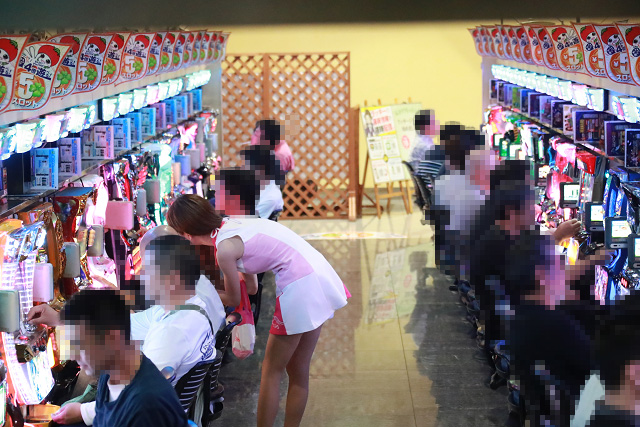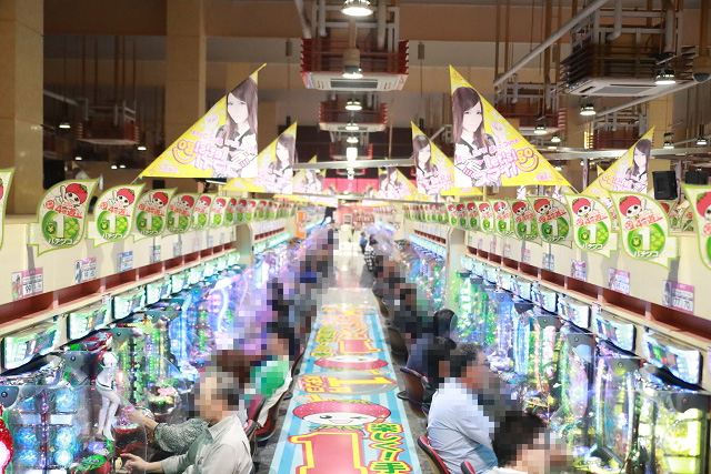 こちらは、パチンコ400台/パチスロ240台、合計640台の併設店だ。