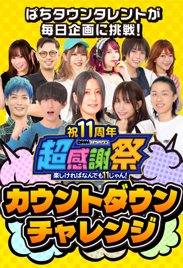チャレンジの模様は、DMMぱちタウン公式Xで毎日お届け。各メンバーの頑張りを見守りながら、11周年当日をお待ちください!