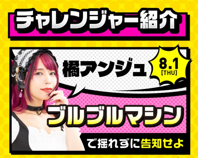 8月1日(木)のトップを飾るのは橘アンジュ(@RareCoinAnju)。立っているだけでブルブルお肉が震える3D振動マシンに乗り、身体を揺らすことなくカウントダウン告知をします。意思でどうこうできる内容じゃない気もしますね。