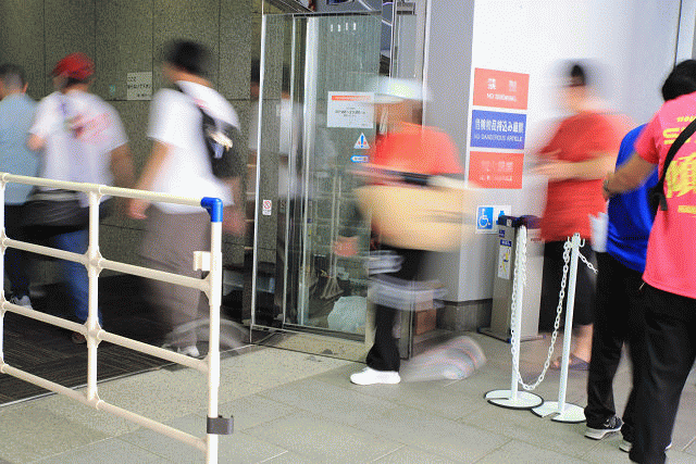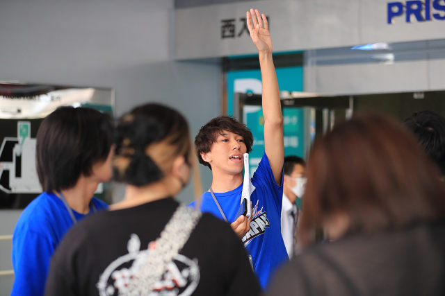 酷暑の中、開場前からファンの長蛇の列ができ、学遊連メンバーも額に汗をかきながら入場のサポートを行い続々と誘導。