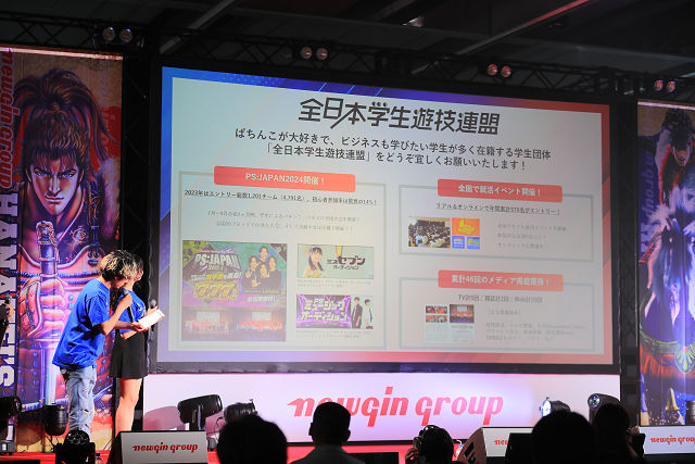 その後も鈴木 康太理事とお色直しをしたひなたが「全日本学生遊技連盟」の活動紹介を行いました。
