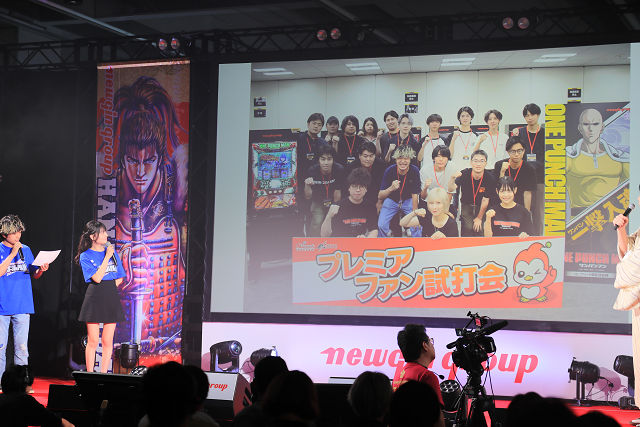 会場では、Bluetooth搭載の試作パチンコ機の試打やプレゼント企画、花の慶次シリーズ最新機種のスマートパチンコ機『e花の慶次~傾奇一転』や、8月5日(月)から全国導入がはじまるパチスロの新台『Lワンパンマン』の試打ちも行われ、多くのファンの笑顔が見られました。