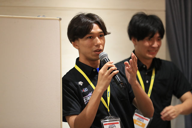 質疑する選手と回答する学遊連メンバー