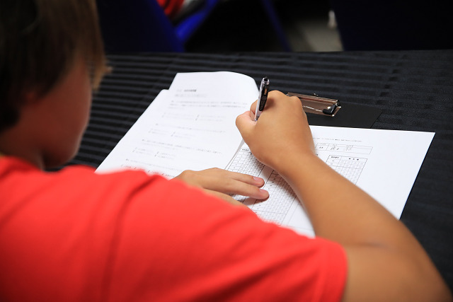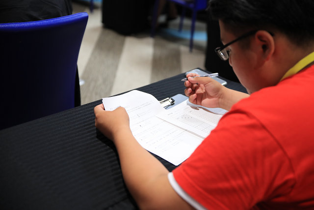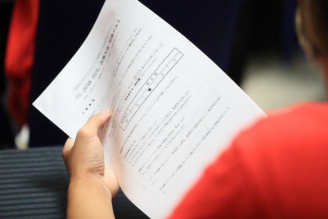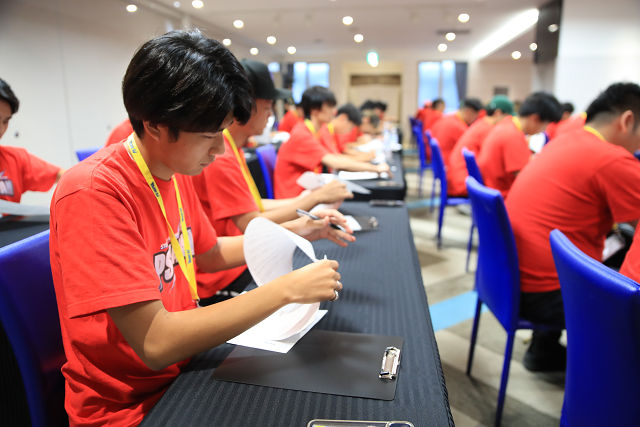 実技テストの時間とは打って変わり機種情報から規則や、法律問題まで幅広く出題されるPS:JAPANの知識テスト。全選手参加でチーム上位3名の得点がチームポイントに反映されます。テストは「筆記」で行われ、会場は午前中の実技テストとは真逆の静けさに包まれていました。選手一人ひとりが、目の前の答案用紙に真剣に向かい合い、その光景たるや入試テストさながらです。