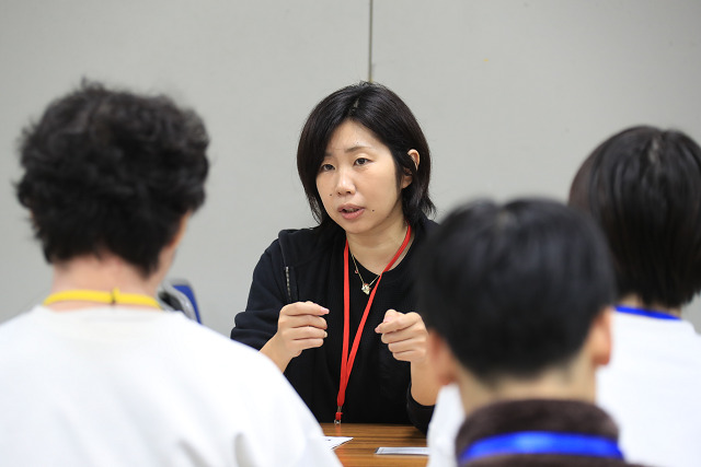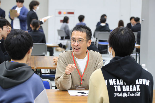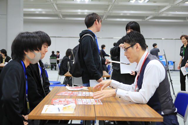 資料の手渡しや説明、相談等、来場した学生に親身に対応していました。