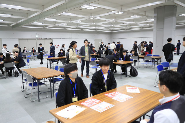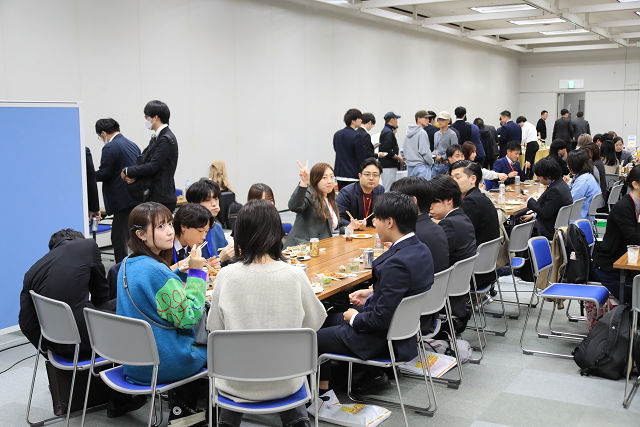 今回は、参加者・出展企業共に非常に多く、時間内に回り切れなかった学生も懇親会でざっくばらんに質問をする光景も見られました。