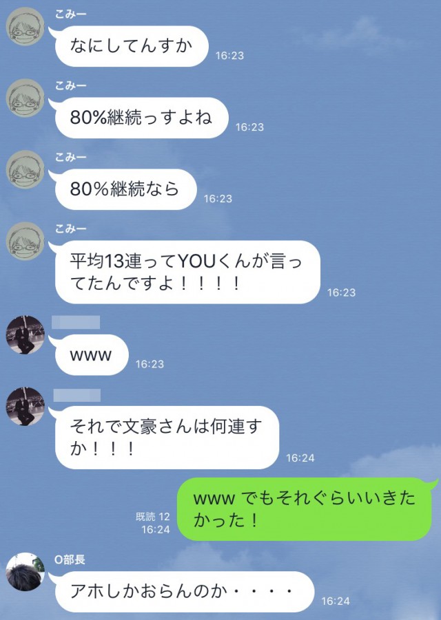 無言を貫いていると、放置されたBBSよろしくLINEの画面が風俗店情報や加藤鷹さんの画像で埋め尽くされていきます。