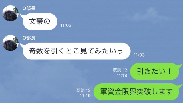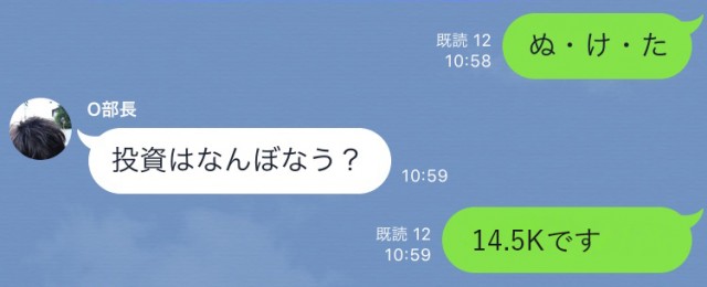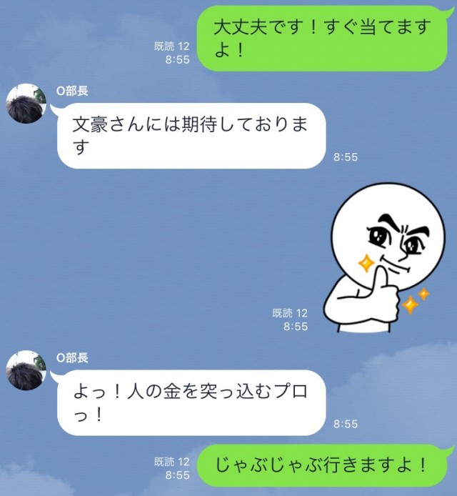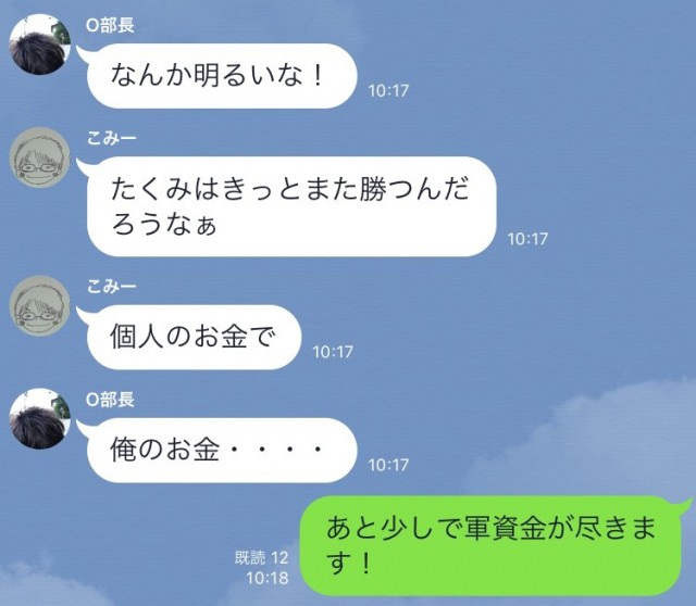 苦しそうに「軍資金を足そうか」というO部長の提案を断り、はみ出した分は自腹でと告げます。