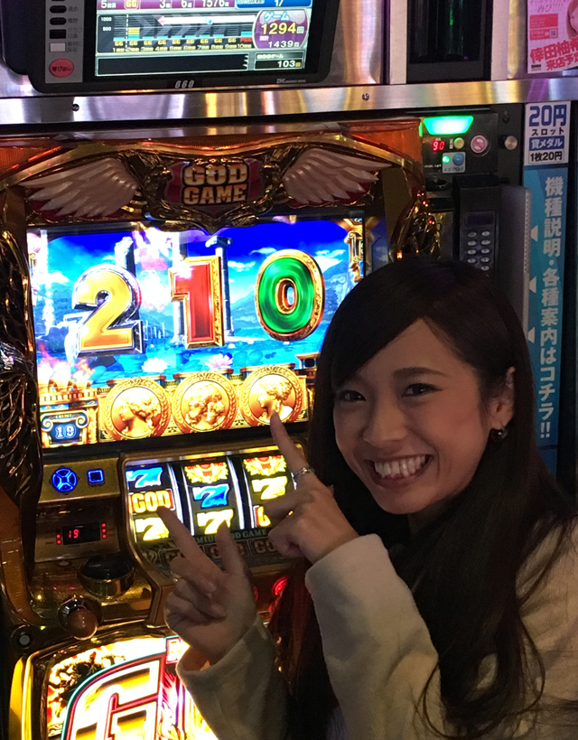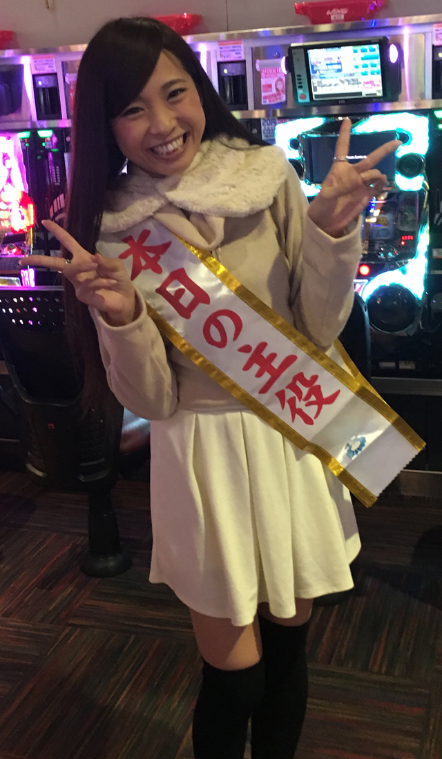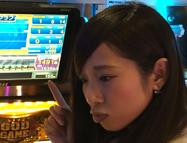 朝の抽選から参加したゆずっきー。狙い台は、29歳の運勢を占う意味で