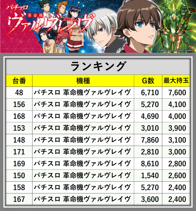 ヴァルヴレイヴランキング