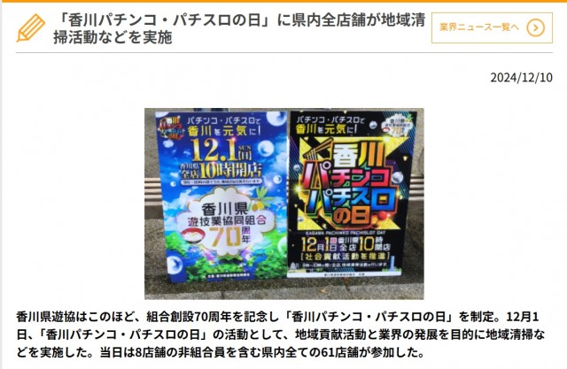 この清掃活動は香川県遊協が主催する「香川パチンコ・パチスロの日」の開催に伴い、昨年から始めた社会貢献活動の一環で、昨年は国の特別名勝に指定されている「栗林公園」などの清掃活動も行っています。