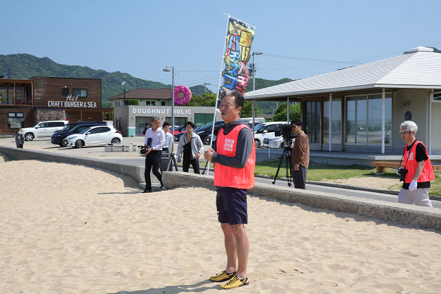 当日は、香川県遊協の参加企業とそのご家族も含め、84名(内、子供8名)が父母ヶ浜に集合。