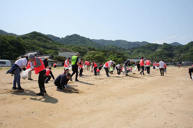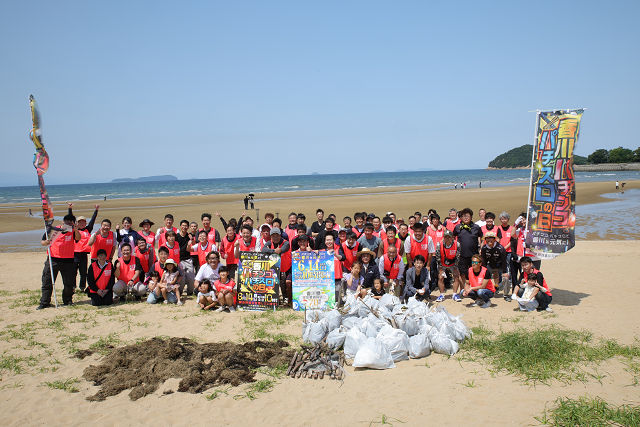 昨年に引き続き、今回も「元気で挨拶」を合言葉に、場所は三豊市の「父母ヶ浜」での清掃活動を行いました。