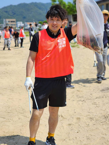 風も強く、広大な砂浜を慣れない足取りで歩く有村くんも、次々とゴミを回収。大きなゴミから小さなゴミまで次々と回収し、額に汗がにじみます。