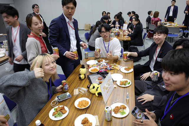 出展企業は回を重ねるごとに増え、すべてのブースを回り切れなかった学生も、懇親会では企業担当者に率直な質問をし、距離を縮めていました。