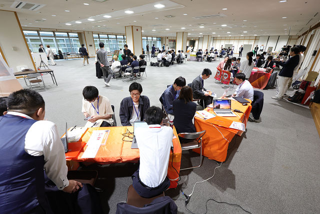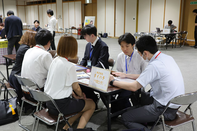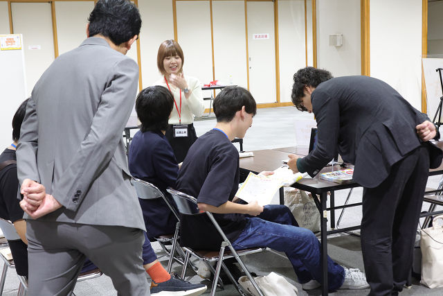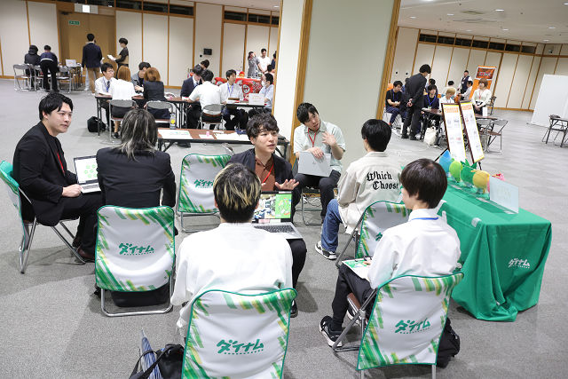 当日はあいにくの大雨。天候には恵まれない状況でしたが、その中で来場した学生の本気度は非常に高く感じられました。企業担当者も「来場キャンセルする学生もいる中で、リアルに足を運ぶ学生の皆さんは我々の企業説明に真剣に耳を傾けていて、とても前向きな学生が多いと感じました」とのコメントもいただきました。
